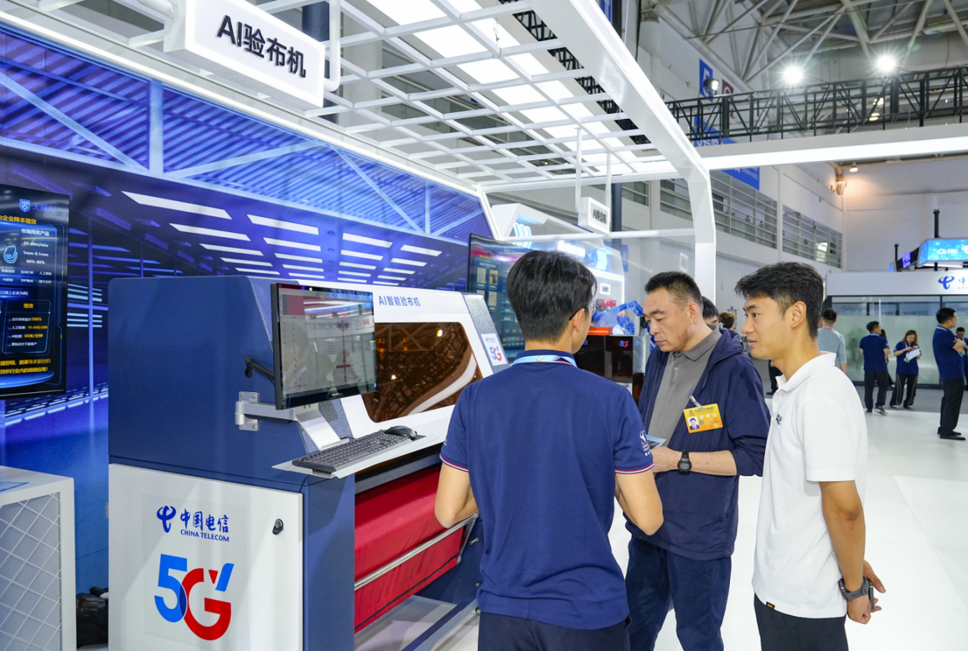 中国电信还特别展出了一系列落地福建的智慧工厂项目,现场演示5G智能制鞋生产示范线、AI验布机、AI验盒机等智能设备,让观众直观领略AI技术推动新型工业化、助力数字福建蓬勃发展的新图景。