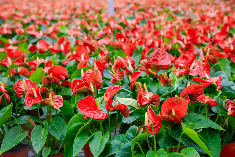 如火的红掌组成一片绚丽花海。新华网发(受访者 供图)