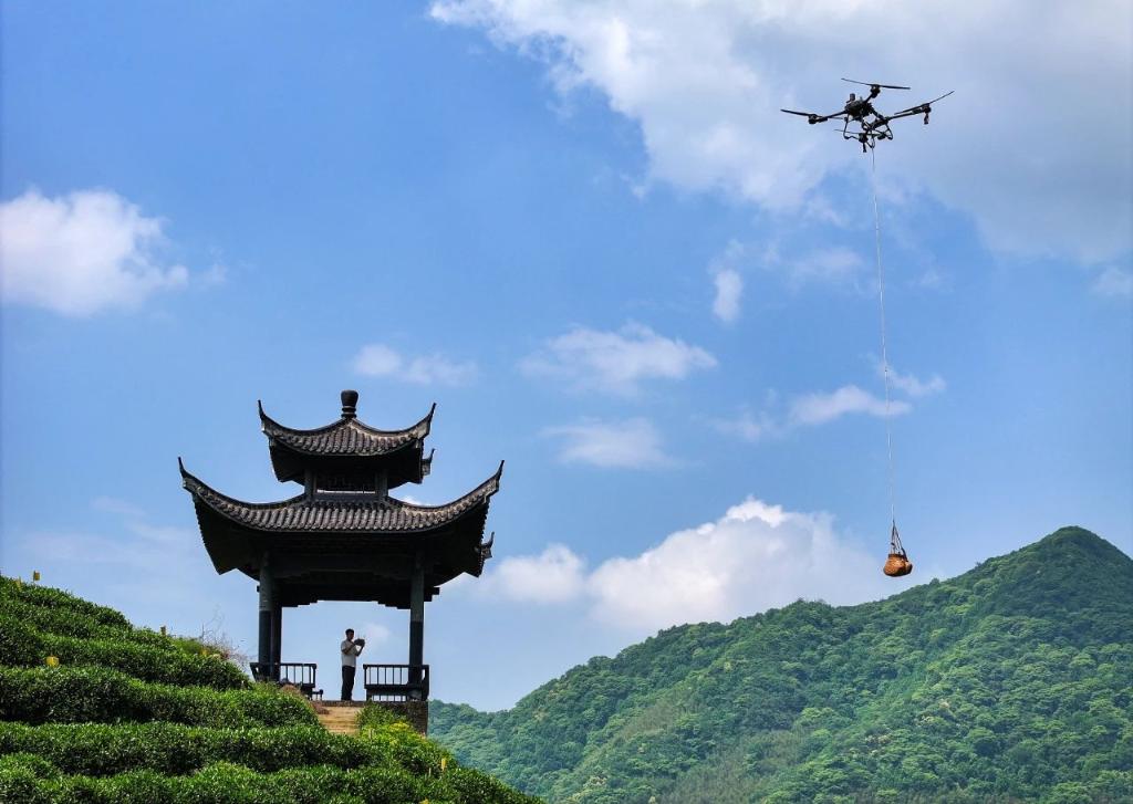 一年来,来黄山风景区旅游的游客们时常能看到:随着“嗡嗡”声响起,拉起重物的大疆无人机稳稳地向着山脚飞去。自2023年5月,这里试行开展无人机物流运输生产作业以来,5架无人机采取双机运输模式,上行补给物资,下行以布草、垃圾运输为主,截至目前已累计运送物资近千吨。