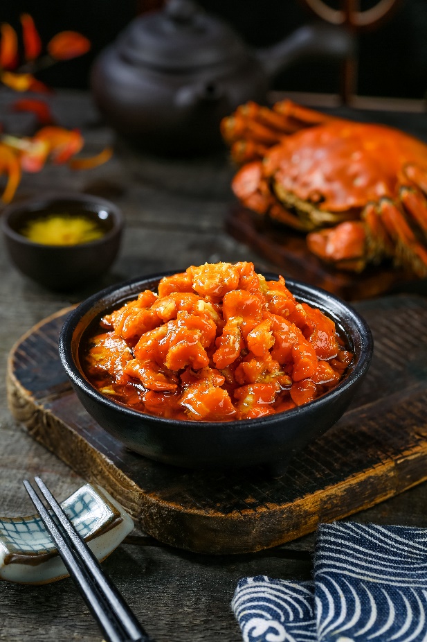 兴化得天独厚的自然生态为河蟹提供了理想的栖息与生长环境,为兴化大闸蟹的卓越品质奠定了坚实基础。“兴化大闸蟹”肉质细嫩,色清如玉,口味鲜美诱人,“色、香、甜、咸、爽”五味俱佳,食之回味无穷。“兴化大闸蟹”蟹背呈青灰色、平滑而有光泽、白肚有玉质美感,金爪肉感强,蟹腿绒毛黄而密且清爽,到了成熟时公蟹体内膏红似火、蟹脂香酥,母蟹蟹黄味美香飘,蟹肉饱满,口感香味、鲜味、甜味极佳。青壳、白肚、金爪、黄毛、膏红、脂满是“兴化大闸蟹” 的典型特征。