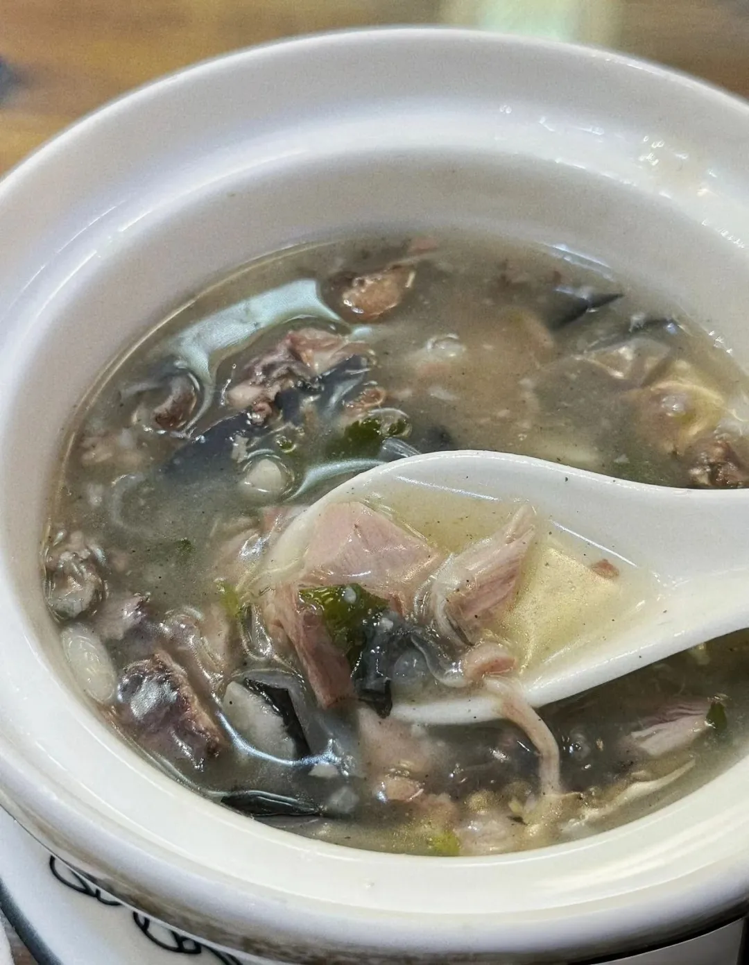 烩粉皮其实最顶级的搭配是甲鱼(土话称为“甲鳖”)。甲鱼清汤煨好,肉骨分离拆解后放入粉皮,甲鱼的胶原蛋白和粉皮的丝滑融汇成绝佳的囗味。甲鱼虽然是土产,但终究价高量少,比较贵重,很少人家会这样做。