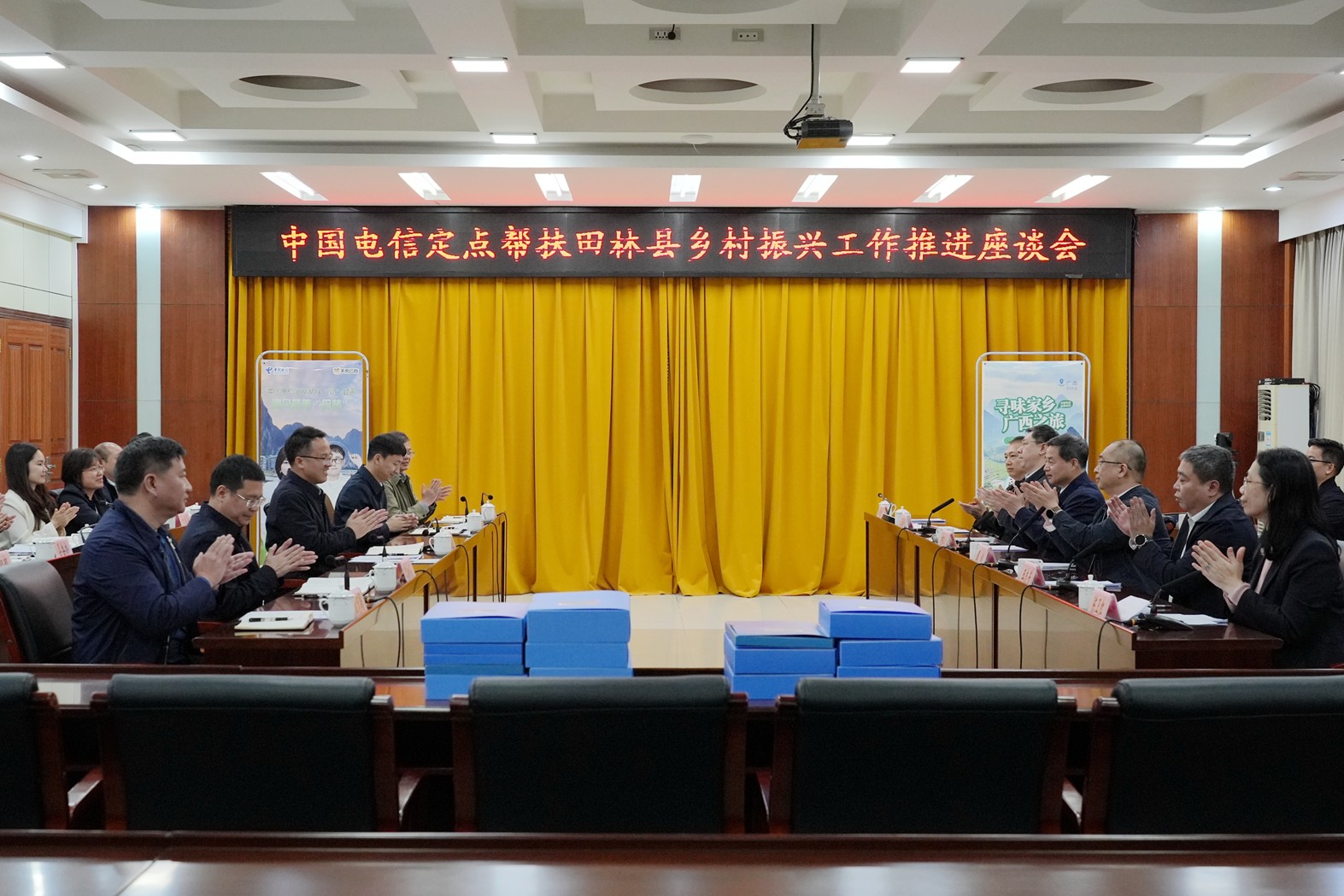 在定点帮扶座谈会上,柯瑞文表示,今年“中央一号文件”对做好2025年“三农”工作提出明确要求,中国电信将深入贯彻落实党的二十大和二十届二中、三中全会精神,以更大力度、更实举措推动定点帮扶工作,助力田林县走出一条具有自身特色的乡村振兴之路。