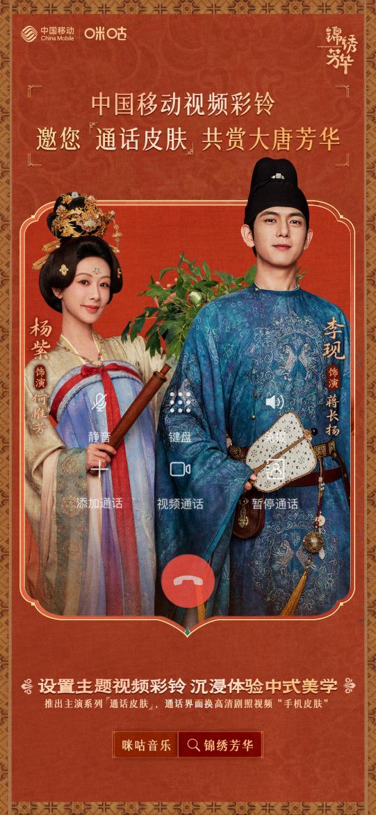 现在,打开咪咕音乐APP或咪咕彩媒小程序,即可轻松设置《锦绣芳华》主题视频彩铃通话皮肤。选择你心仪的名场面,简单几步,就能让你的来电等待都充满仪式感与大唐韵味。中国移动用户可免费尊享这一视觉盛宴,设置同款皮肤,与亲友共赏盛世芳华,让通话界面也成为追剧品位的独特表达。