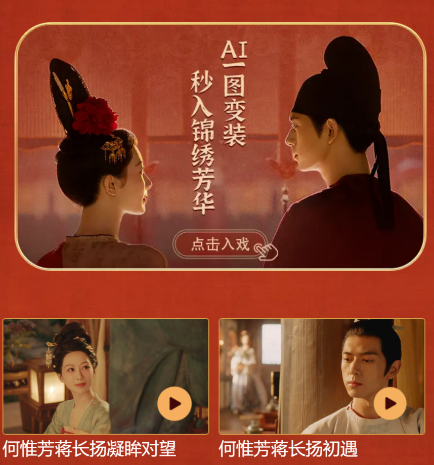 现在起,你的每一次通话界面都能再现剧中的经典场景和高光人物,甚至还能AI一图变装,一键“穿越”成为何惟芳、蒋长扬本尊。