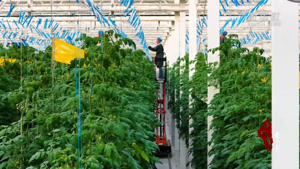 走进河北省大名县智慧农业科技产业园樱桃番茄种植基地,工作人员正在对樱桃番茄进行落蔓处理,这些樱桃番茄长势喜人,即将迎来采收季。