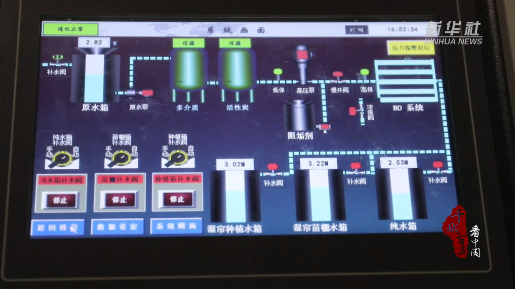 该基地种植的樱桃番茄采用无土椰糠栽培,利用潮汐式育苗床自动精准供给水肥,环境传感器实时回传温湿度数据,实现了对农作物生长全周期的精准管理。