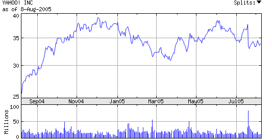 雅虎在纳斯达克的股价走势(图)