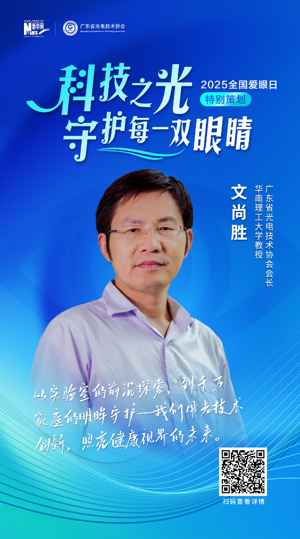 广东省光电技术协会会长、华南理工大学教授文尚胜:从实验室的前沿探索,到千万家庭的明眸守护——我们用光技术创新,照亮健康视界的未来。