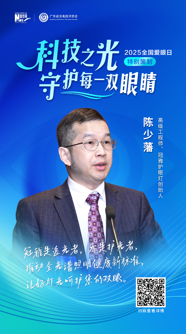 高级工程师、冠雅护眼灯创始人陈少藩:冠雅是追光者,亦是护光者,推动全光谱照明健康新标准,让好灯光呵护您的双眼。