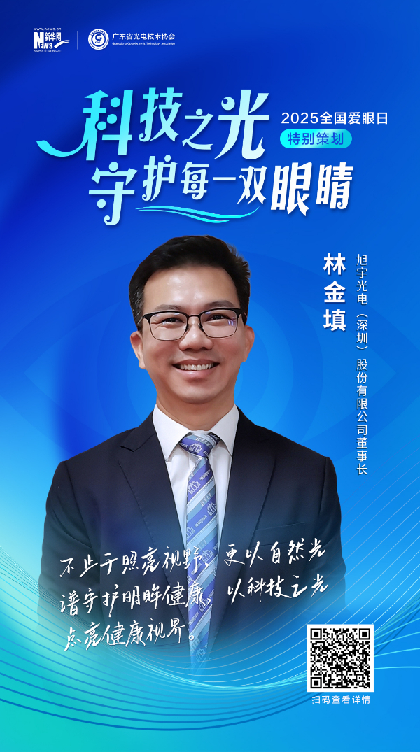 旭宇光电(深圳)股份有限公司董事长林金填:不止于照亮视野,更以自然光谱守护明眸健康,以科技之光点亮健康视界。