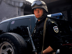 出战时,一袭黑色作战服,胸前写有醒目白色SDT字母,左臂上是白底黑字的特侦图标,头戴防弹钢盔,时而长枪,时而短枪,神秘而威武;多次面对持刀的绑匪,巧妙接近,神速而精准的枪法,制服绑匪,从刀尖下救出命悬一线的人质。