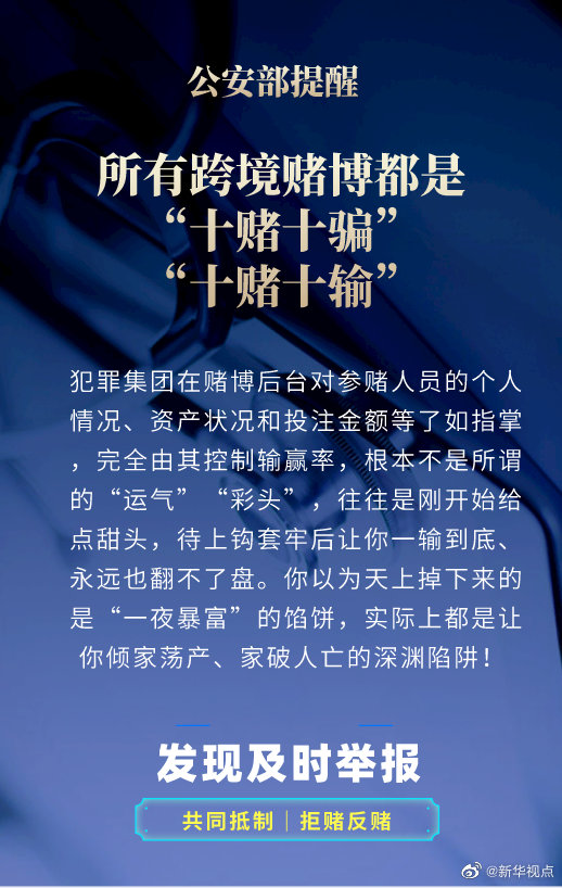 公安部国际合作局局长廖进荣5日在公安部新闻发布会上表示,根据有关数据显示,每年春节长假都是境外赌博集团对我招赌吸赌活动最为猖獗的一个时期,不仅造成我大量资金外流,还衍生绑架、勒索、涉黑涉恶等恶性犯罪,严重威胁我经济安全和社会稳定,破坏节日气氛。无论是出境参赌、网上赌博还是以各种方式为赌博活动提供资金和技术支持都是违法行为,必将受到法律的制裁。让我们一起拒赌反赌,共同度过一个欢乐祥和平安的牛年春节。(记者 熊丰)
