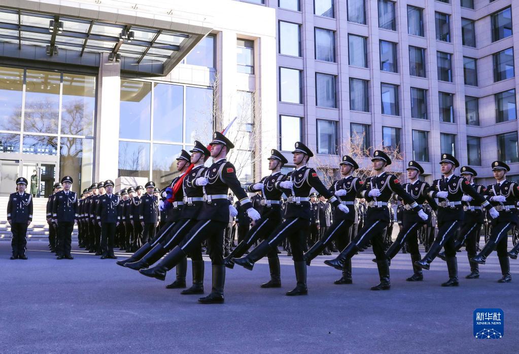 2021年1月10日,公安部机关举行警旗升旗仪式。全国公安机关受表彰先进集体和英模代表、部机关干部代表300余人参加仪式,重温入警誓词,高唱警歌,向警旗庄严敬礼。新华社记者 殷刚 摄