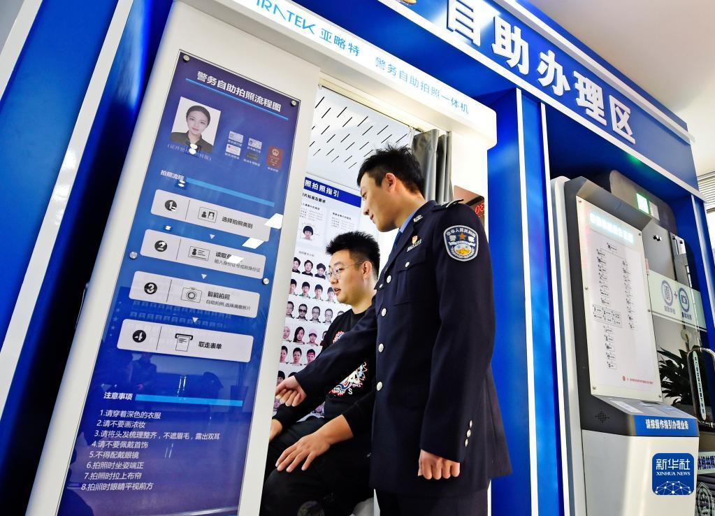 2021年12月10日,在辽宁省本溪市公安局北地派出所民警指导下,市民自助办理机动车驾驶人相关业务。新华社发