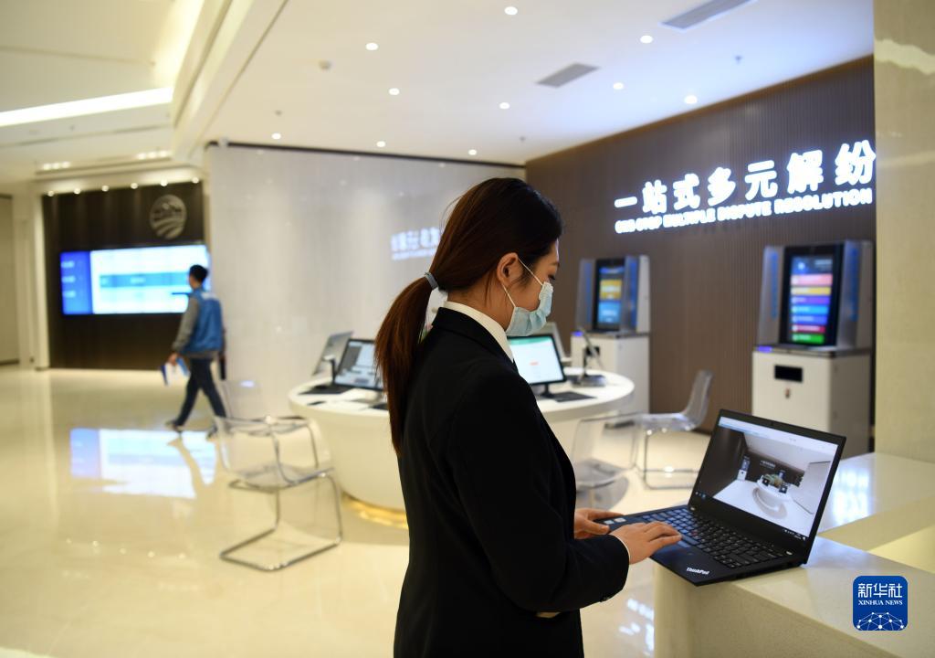 2020年12月3日,工作人员演示VR全景线上诉讼服务大厅。北京市第三中级人民法院与科技企业联合,按照具体应用场景打造“数字法院智能一体化解决方案”,提升法院智能化水平,提高工作效率,为群众提供更好服务。新华社记者 金良快 摄