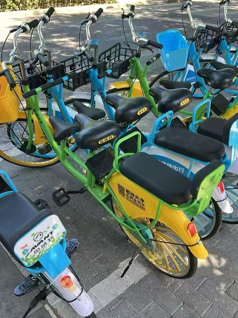 这些车辆有一些共性特点:都是两座或三座自行车。不同于正规共享单车的免押金骑行和常见计时标准,这些车一般1小时起租,服务费高达每小时30至40元,同时还收取100至200元押金。车辆大多为定点租还,超出骑行区域还车,还要收取20至30元“调度费”。