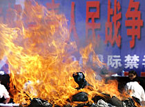 中越警方联合禁毒 公开销毁60公斤海洛因(图)