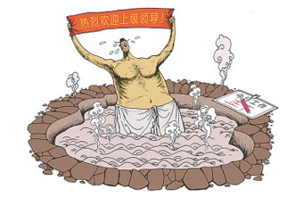 内蒙古某县城以温泉著称,分管外宣工作的副县长对记者说,年底很多部门要过来参观考察、检查验收。有一天,他接待了十来批客人,大多数来的人都要体验一下当地的温泉,他一天陪洗了八次,整个人都快泡虚脱了。最后一次他都没有更换衣服,直接就在温泉池子里等客人到来。