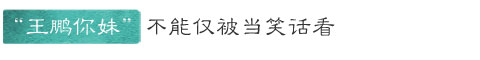 事件发生后,抢注"王鹏你妹"拼音域名的有之,以足球队员王鹏的口吻调侃"我招谁惹谁了"的有之,更多的网友以及媒体则把这当做笑料,将其和"贾君鹏,你妈喊你回家吃饭"相提并论……"王鹏你妹"带给人们的,仿佛只有欢乐,而没有忧虑。