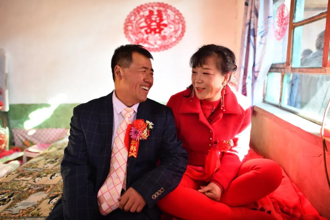 新郎马爱明和新娘温丽芳在炕上聊天 詹彦 摄