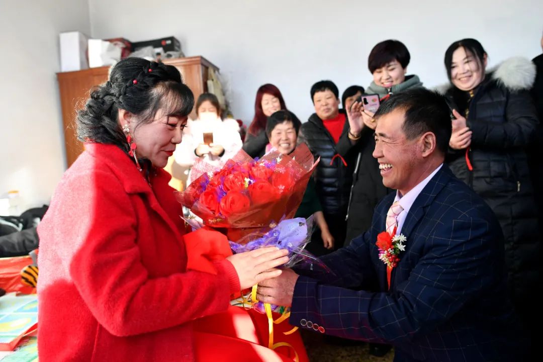 2019年12月31日,新郎马爱明将花送给新娘温丽芳 詹彦 摄