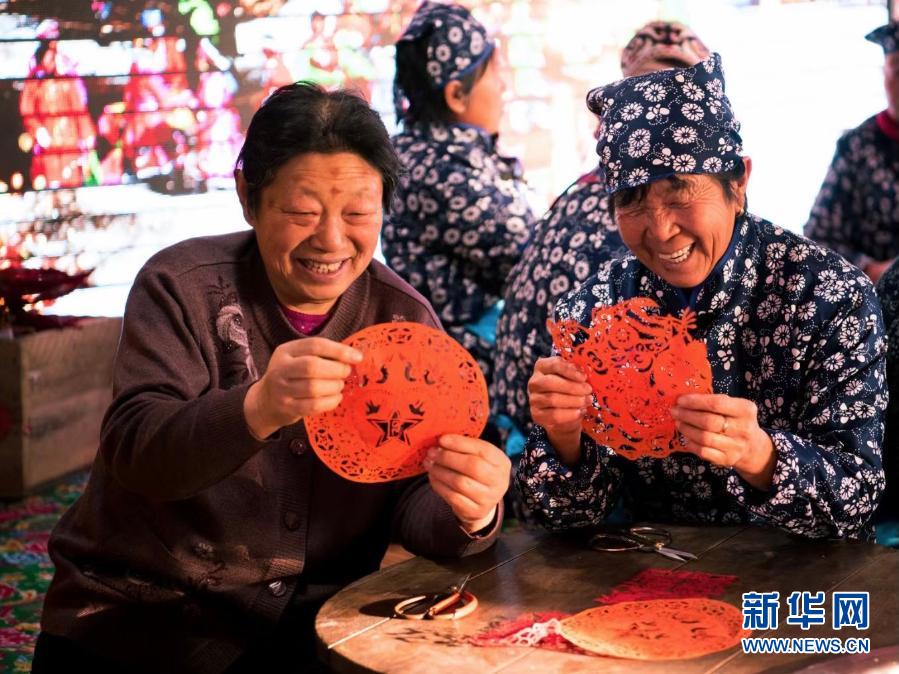 在黑龙江省双鸭山市饶河县西林子乡小南河村,村民展示手工制作的窗花(2020年12月31日摄)。新华社发