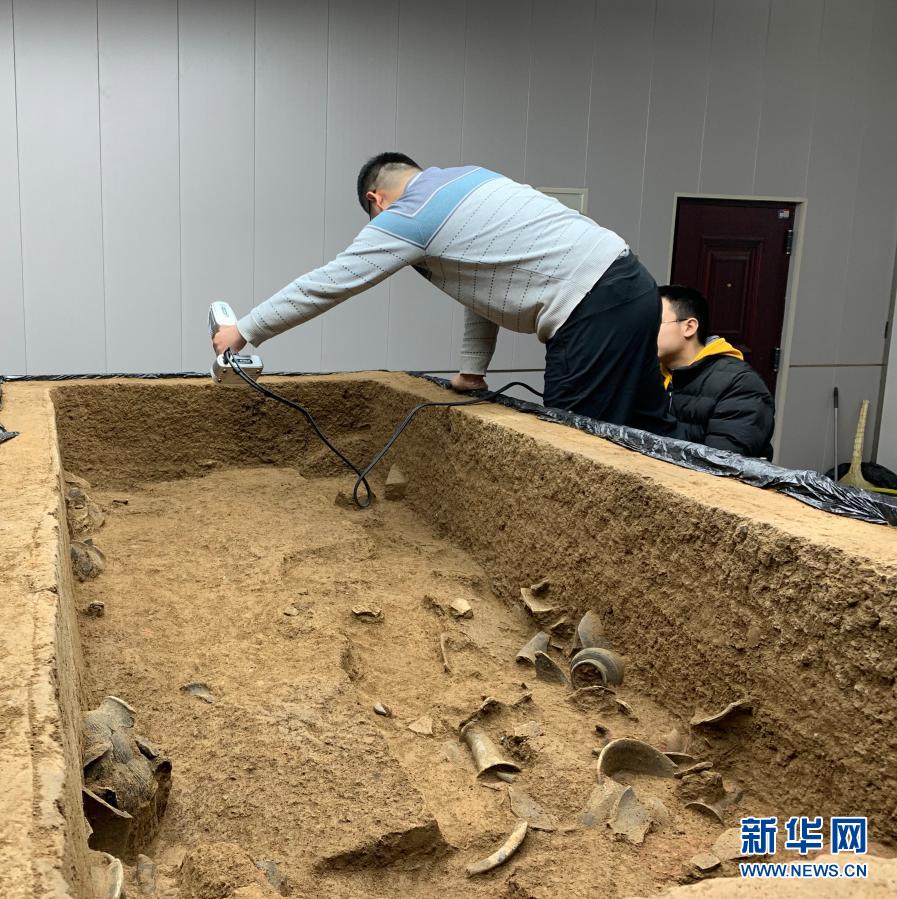 考古人员在提取河南偃师二里头遗址新发现墓葬的相关信息(资料照片)。新华社发(二里头考古工作队供图)