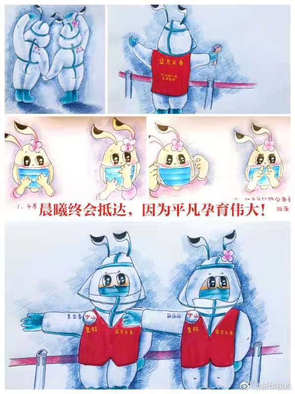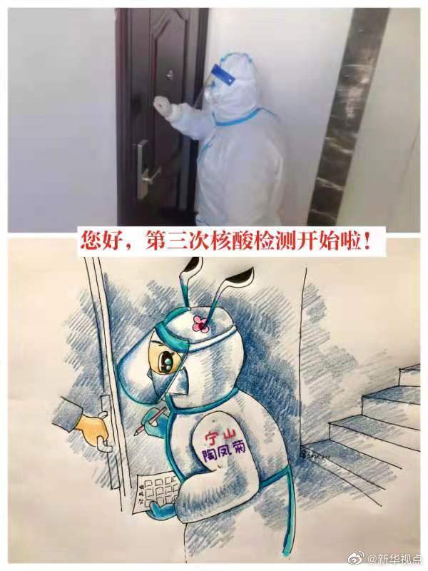 辽宁省沈阳市从事美术教学工作的手绘者齐敬,近日用漫画形式记录了沈阳抗疫志愿者的日常。漫画中的大白们,英姿飒爽、身姿矫健、神情灵动。点赞!向所有了不起的抗疫英雄致敬!(记者王莹、李恒)