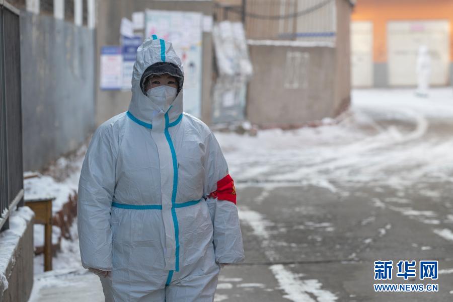 1月15日,志愿者在望奎县前进街道佳兴小区内巡逻。 新华社发(张涛 摄)