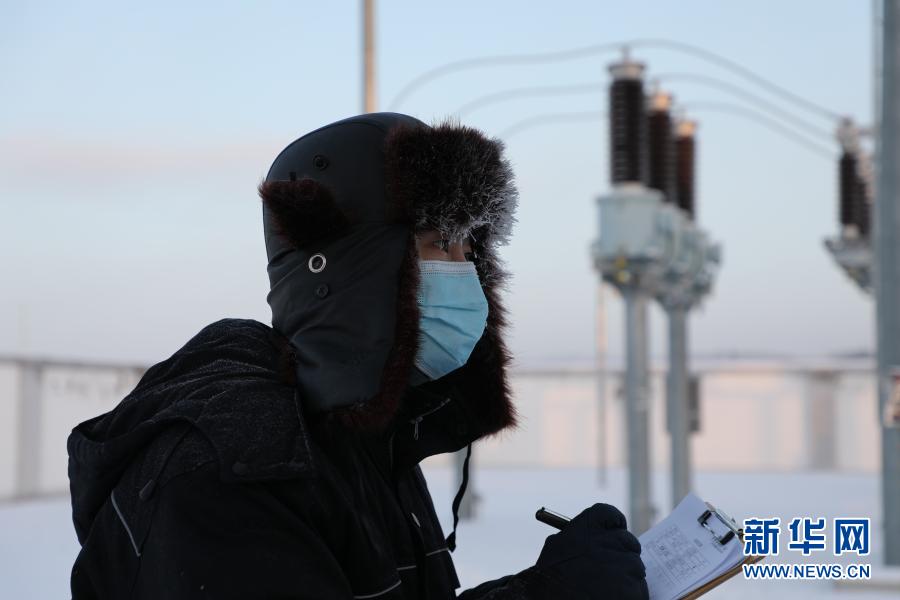 1月4日,国网科右前旗供电公司乌兰毛都供电所员工在严寒中检查变电设备。新华社发