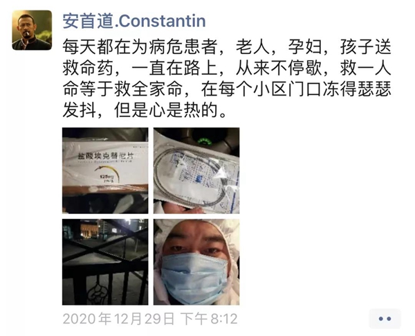 这段时间,他每天给城区里的老人、孕妇、孩子、癌症患者等