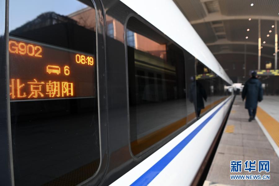 这是停靠在哈尔滨西站的京哈高铁G902次列车,该列车哈尔滨至北京运行时间为4小时52分(1月22日摄)。