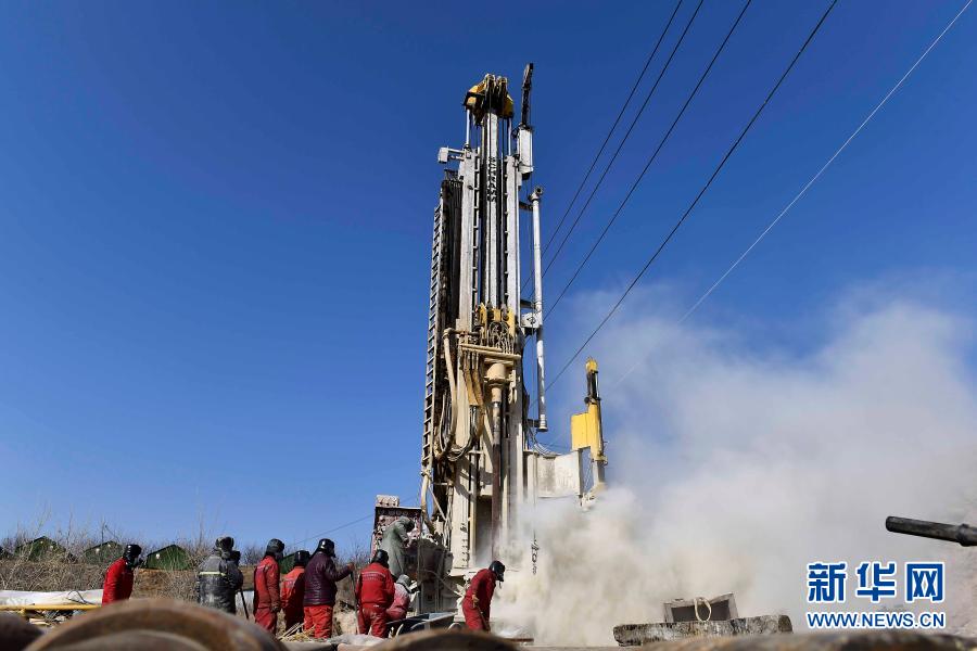 1月19日,救援人员在进行钻孔作业。新华社记者 郭绪雷 摄