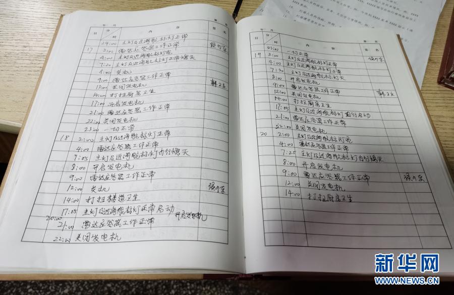 “17:05,主灯及近海航标灯正常启动”“2:00,主灯及近海航标灯正常”“7:20,主灯及近海航标灯熄灭”……翻开守塔人的工作日志,这些枯燥而又动人的简短记录映入眼帘。保障灯器正常工作是守塔人最重要的职责,到了晚间,他们就轮流值守,不眠不休地守护着来往船舶。