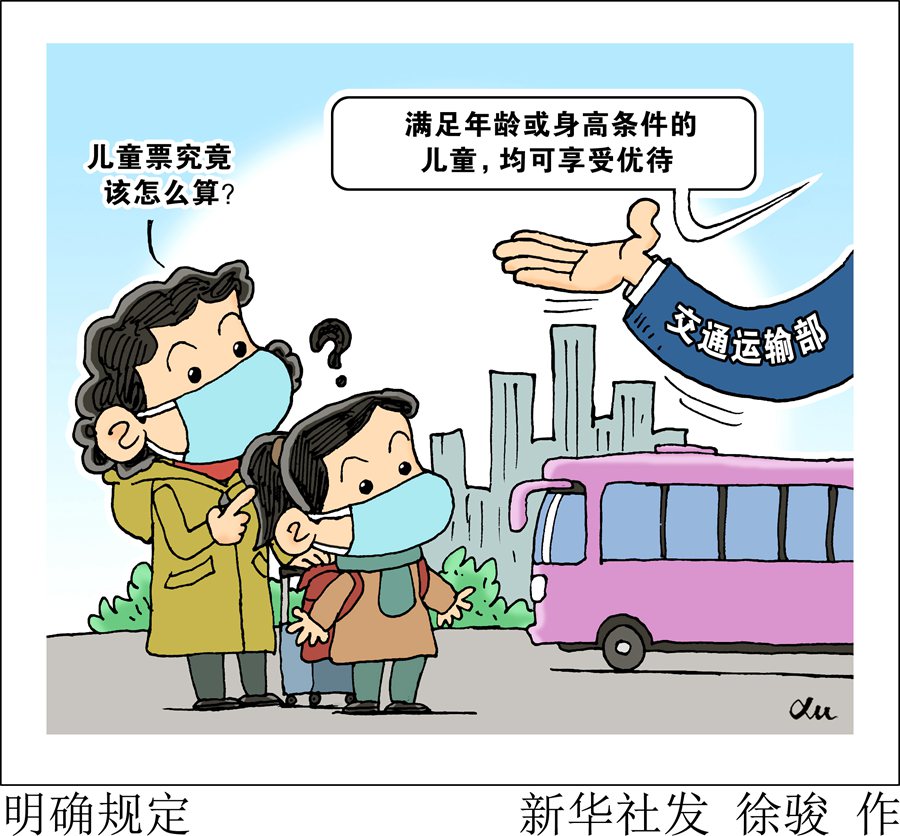 新华社北京2月3日电(记者魏玉坤)春运已至,很多带着孩子回家的旅客想知道,儿童票怎么买?日前,网络上“满足年龄或身高二者之一可享儿童票”的话题又登上热搜,如何理解这个规定?交通运输部有关负责人3日在接受新华社记者采访时表示,只要满足年龄或身高条件的儿童,均可享受票价优待。