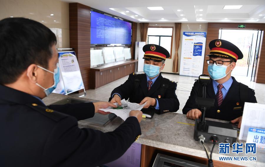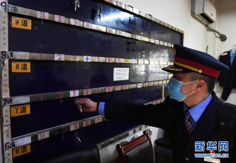 1月28日,在重庆机务段兴隆场北折返所,电力机车司机江彤领取值乘机车钥匙。 新华社记者 王全超 摄