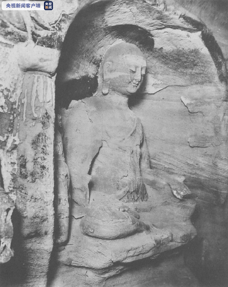 既然佛身已仅剩轮廓,那么专家又是如何判定,佛首与佛身是一体的呢?这就不得不提到上世纪二十年代拍摄的一组老照片了。