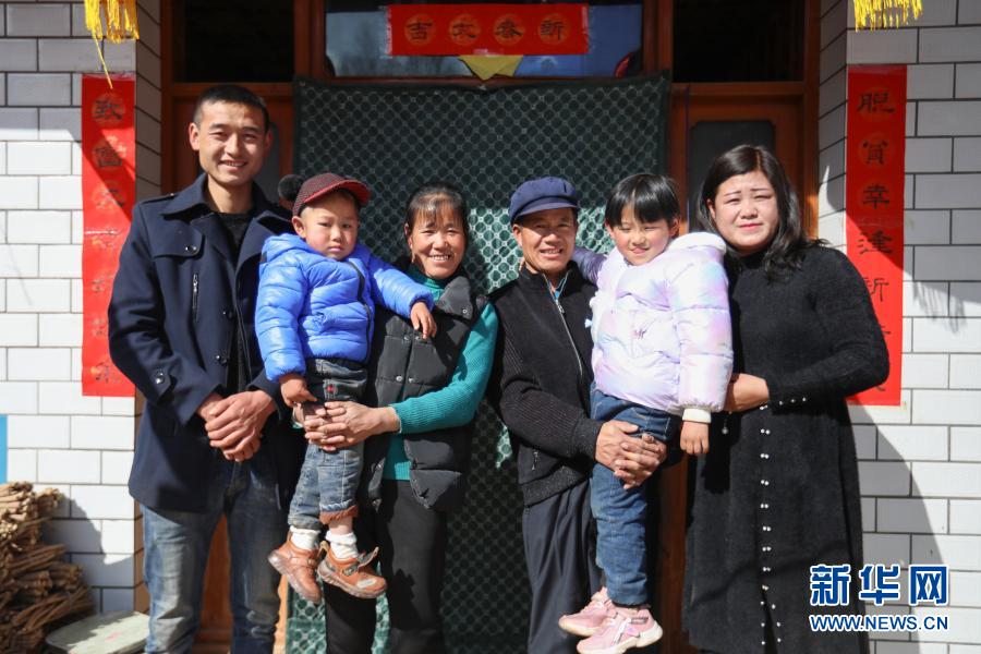 2月11日,在甘肃省定西市渭源县田家河乡元古堆村,曾玉成(右三)一家在拍全家福。新华社记者 马希平 摄