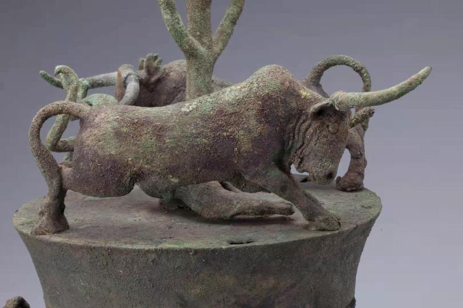 贮贝器上牛搏斗的特写。云南省博物馆供图