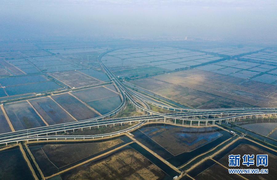 这是位于汕头市潮阳区的潮汕环线桑田互通立交(2020年12月28日摄,无人机照片)。