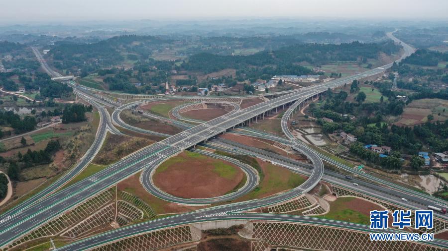 这是成资渝高速公路中和枢纽互通(2020年12月30日摄,无人机照片)。