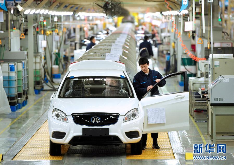 工人在北汽新能源河北黄骅分公司总装车间工作(2019年12月21日摄)。