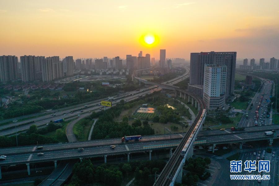 列车行驶在上海轨道交通11号线北段延伸工程花桥段(上海安亭站至昆山花桥站)兆丰路站附近(2020年8月21日摄,无人机照片)。