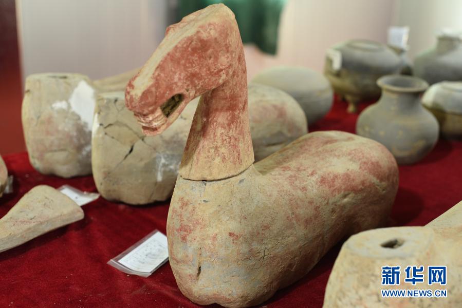 这是黄河孟津会盟段河道内古墓群出土的陶马(2月21日摄)。新华社发(洛阳市文物考古研究院提供)