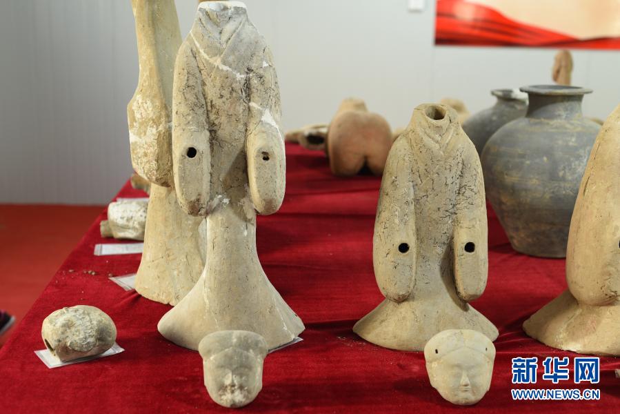 这是黄河孟津会盟段河道内古墓群出土的陶仕女俑(2月8日摄)。新华社发(洛阳市文物考古研究院提供)
