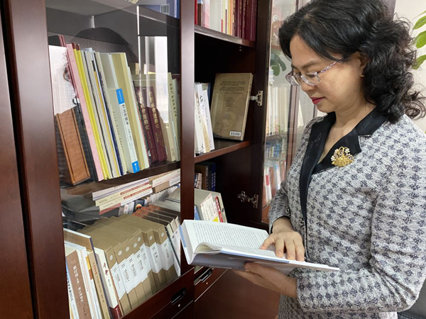 2月24日,全国政协委员江尔雄在福建省台联办公室翻阅书籍。新华社记者 许雪毅 摄