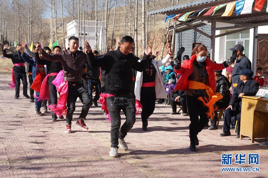 2月23日,在木场村射箭场,村民们跳舞迎客。新华社记者 解统强 摄