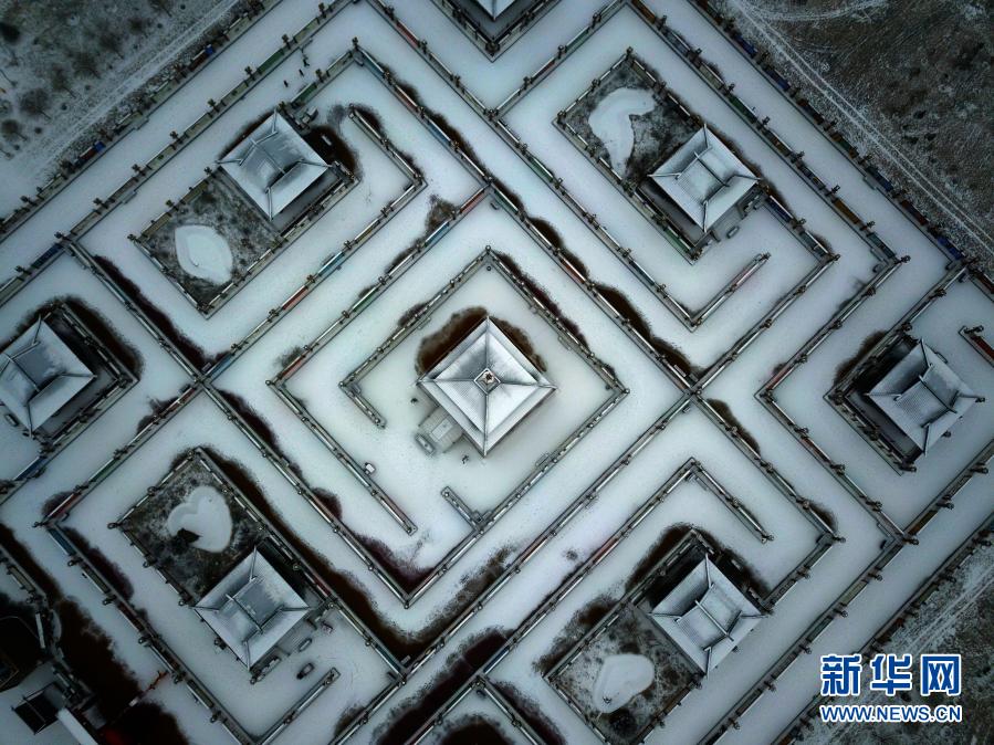 2月28日拍摄的甘肃省张掖市甘州区碱滩镇古城村雪景(无人机照片)。新华社发(成学磊 摄)