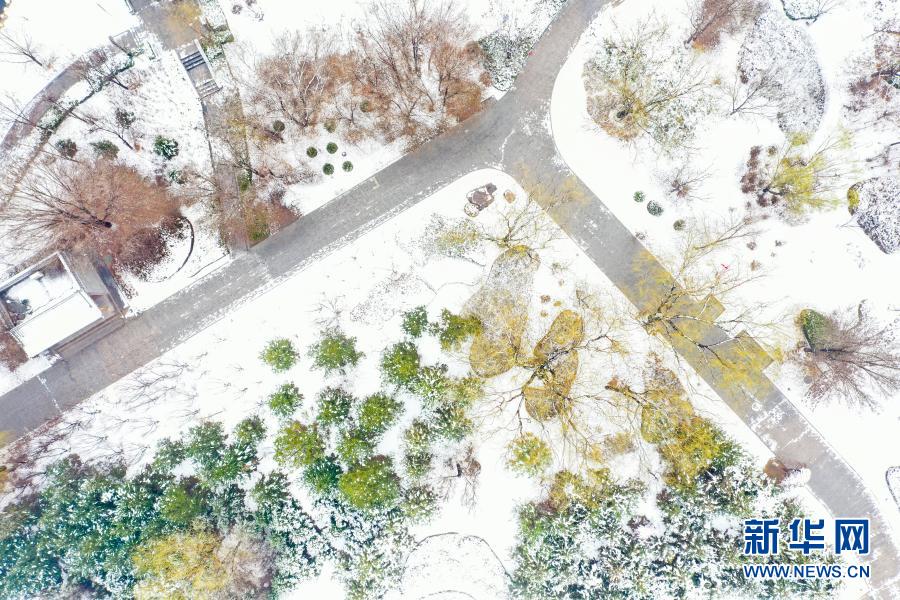 这是3月1日拍摄的山西平遥古城南门外迎薰公园一角(无人机照片)。新华社发(梁生仁 摄)