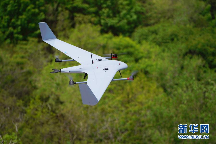 在北京市海淀区凤凰岭拍摄的护林防火巡查中的无人机(2018年5月1日摄)。